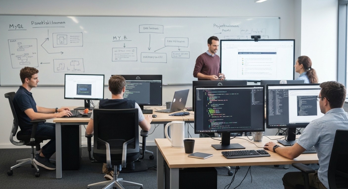 Anwendung von PHP, C++, C#, Visual Basic, ASP.NET, Java oder einer anderen Programmiersprache unter Einbeziehung eines Datenbankmanagementsystems (z. B. MySQL, Oracle) bzw. alternativ Projektentwicklung rund um ein CMS