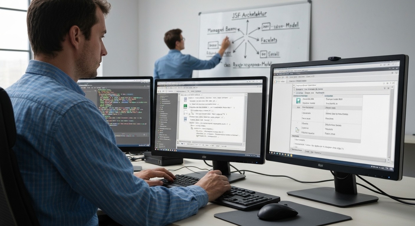 In diesem Kurs lernen Sie, wie mit den JavaServerFaces der Java Enterprise Edition grafische Benutzungsoberflächen für Webanwendungen erstellt werden.