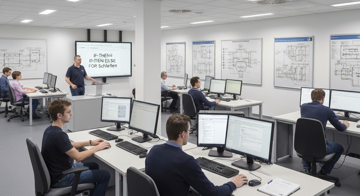 Die Programmiersprache SCL (Structured Control Language) ist in vielen Bereichen der Automatisierung und Steuerungstechnik verbreitet. Im SPS-Spezialkurs SCL erlangen Sie tiefgehende Kenntnisse in SCL. Sie vertiefen Ihr Verständnis für den Digitalen Zwilling und die Modernisierung von Produktionsprozessen von Lean zu Smart inklusive der damit einhergehenden organisatorischen und logistischen Anpassungen. Diese Weiterbildung bereitet Sie darauf vor, in verschiedenen Bereichen der modernen Industrie effektiv zu arbeiten, insbesondere in der Fertigung und Produktion.