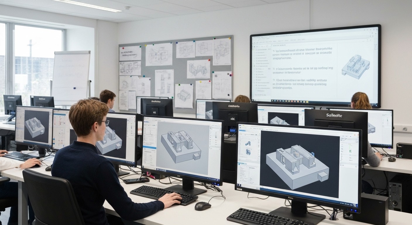 SolidWorks® ist eine 3D-CAD-Software, mit der parametrische Modelle (Teile) erzeugt werden. Die Volumenmodelle werden anschließend mittels „Einschränkung von Freiheitsgraden“ zu anderen Teilen positioniert, sodass Baugruppen entstehen. Von den Einzelteilen und Baugruppen können nun automatisiert Zeichnungen abgeleitet werden.