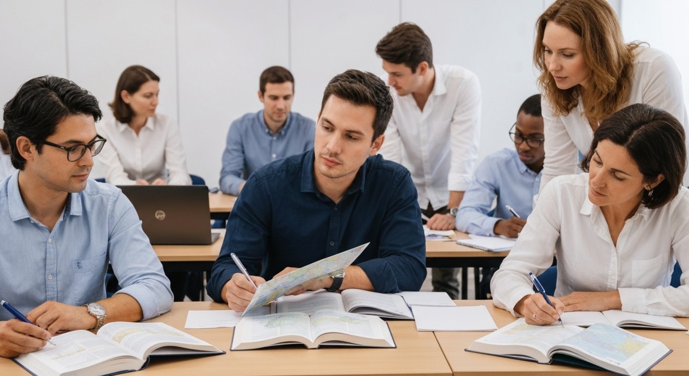 Sie lernen – gemeinsam mit anderen Schulungsteilnehmern – unter Einsatz moderner Unterrichtsmethoden. Mit diesem Mix sind Sie fachlich und persönlich optimal für die Praxis gerüstet. Dazu gehören, je nach Thema, der Live-Unterricht in einem Klassenraum unserer virtuellen Online-Akademie Viona® genauso wie Projektarbeit, die Erstellung und Präsentation eigener Arbeitsergebnisse, das Studium von Fachliteratur u. a. Während der gesamten Weiterbildung steht Ihnen ein moderner PC-Arbeitsplatz zur Verfügung. Sie werden von hochqualifizierten Fachleuten unterrichtet und betreut, die über umfassende theoretische Kenntnisse und fachpraktische Erfahrungen verfügen. Unsere Koordinatoren, die Sie auch beim Lernen begleiten, bieten Ihnen Unterstützung und Hilfestellung bei allen Fragen.
