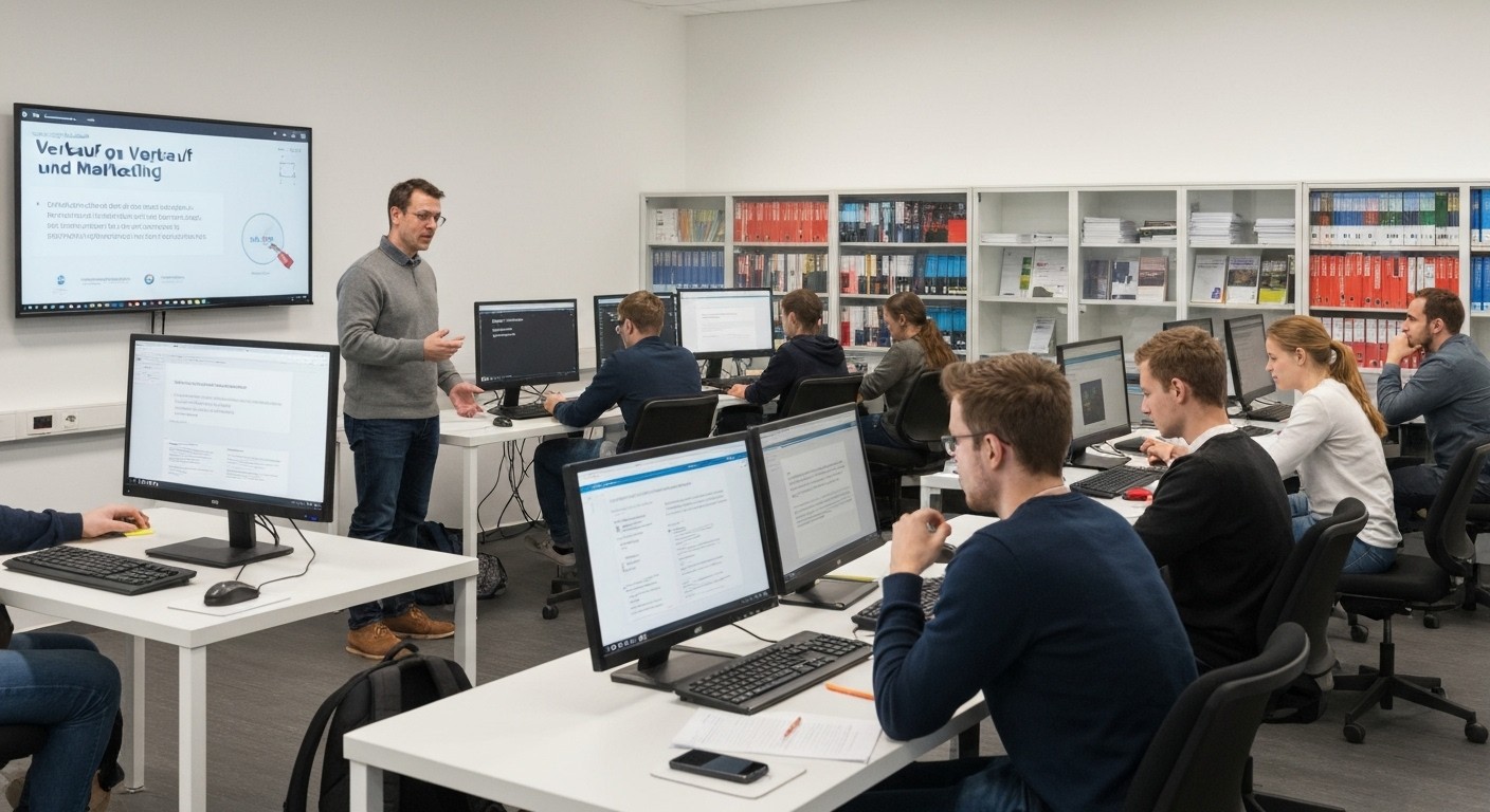 Sie lernen – gemeinsam mit anderen Schulungsteilnehmern – unter Einsatz moderner Unterrichtsmethoden. Mit diesem Mix sind Sie fachlich und persönlich optimal für die Praxis gerüstet. Dazu gehören, je nach Thema, der Live-Unterricht in einem Klassenraum unserer virtuellen Online-Akademie Viona® genauso wie Projektarbeit, die Erstellung und Präsentation eigener Arbeitsergebnisse, das Studium von Fachliteratur u. a. Während der gesamten Weiterbildung steht Ihnen ein moderner PC-Arbeitsplatz zur Verfügung. Sie werden von hochqualifizierten Fachleuten unterrichtet und betreut, die über umfassende theoretische Kenntnisse und fachpraktische Erfahrungen verfügen. Unsere Koordinatoren, die Sie auch beim Lernen begleiten, bieten Ihnen Unterstützung und Hilfestellung bei allen Fragen.