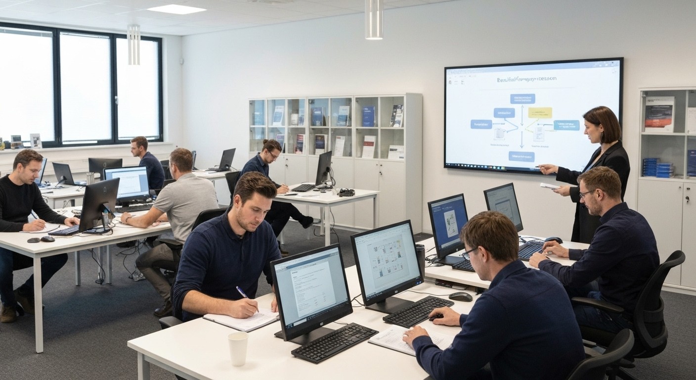Sie lernen – gemeinsam mit anderen Schulungsteilnehmern – unter Einsatz moderner Unterrichtsmethoden. Mit diesem Mix sind Sie fachlich und persönlich optimal für die Praxis gerüstet. Dazu gehören, je nach Thema, der Live-Unterricht in einem Klassenraum unserer virtuellen Online-Akademie Viona® genauso wie Projektarbeit, die Erstellung und Präsentation eigener Arbeitsergebnisse, das Studium von Fachliteratur u. a. Während der gesamten Weiterbildung steht Ihnen ein moderner PC-Arbeitsplatz zur Verfügung. Sie werden von hochqualifizierten Fachleuten unterrichtet und betreut, die über umfassende theoretische Kenntnisse und fachpraktische Erfahrungen verfügen. Unsere Koordinatoren, die Sie auch beim Lernen begleiten, bieten Ihnen Unterstützung und Hilfestellung bei allen Fragen.