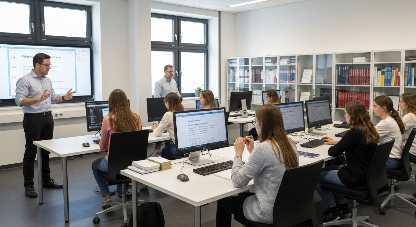 Sie lernen – gemeinsam mit anderen Schulungsteilnehmern – unter Einsatz moderner Unterrichtsmethoden. Mit diesem Mix sind Sie fachlich und persönlich optimal für die Praxis gerüstet. Dazu gehören, je nach Thema, der Live-Unterricht in einem Klassenraum unserer virtuellen Online-Akademie Viona® genauso wie Projektarbeit, die Erstellung und Präsentation eigener Arbeitsergebnisse, das Studium von Fachliteratur u. a. Während der gesamten Weiterbildung steht Ihnen ein moderner PC-Arbeitsplatz zur Verfügung. Sie werden von hochqualifizierten Fachleuten unterrichtet und betreut, die über umfassende theoretische Kenntnisse und fachpraktische Erfahrungen verfügen. Unsere Koordinatoren, die Sie auch beim Lernen begleiten, bieten Ihnen Unterstützung und Hilfestellung bei allen Fragen.