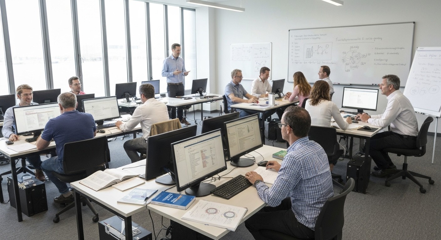 Sie lernen – gemeinsam mit anderen Schulungsteilnehmern – unter Einsatz moderner Unterrichtsmethoden. Mit diesem Mix sind Sie fachlich und persönlich optimal für die Praxis gerüstet. Dazu gehören, je nach Thema, der Live-Unterricht in einem Klassenraum unserer virtuellen Online-Akademie Viona® genauso wie Projektarbeit, die Erstellung und Präsentation eigener Arbeitsergebnisse, das Studium von Fachliteratur u. a. Während der gesamten Weiterbildung steht Ihnen ein moderner PC-Arbeitsplatz zur Verfügung. Sie werden von hochqualifizierten Fachleuten unterrichtet und betreut, die über umfassende theoretische Kenntnisse und fachpraktische Erfahrungen verfügen. Unsere Koordinatoren, die Sie auch beim Lernen begleiten, bieten Ihnen Unterstützung und Hilfestellung bei allen Fragen.