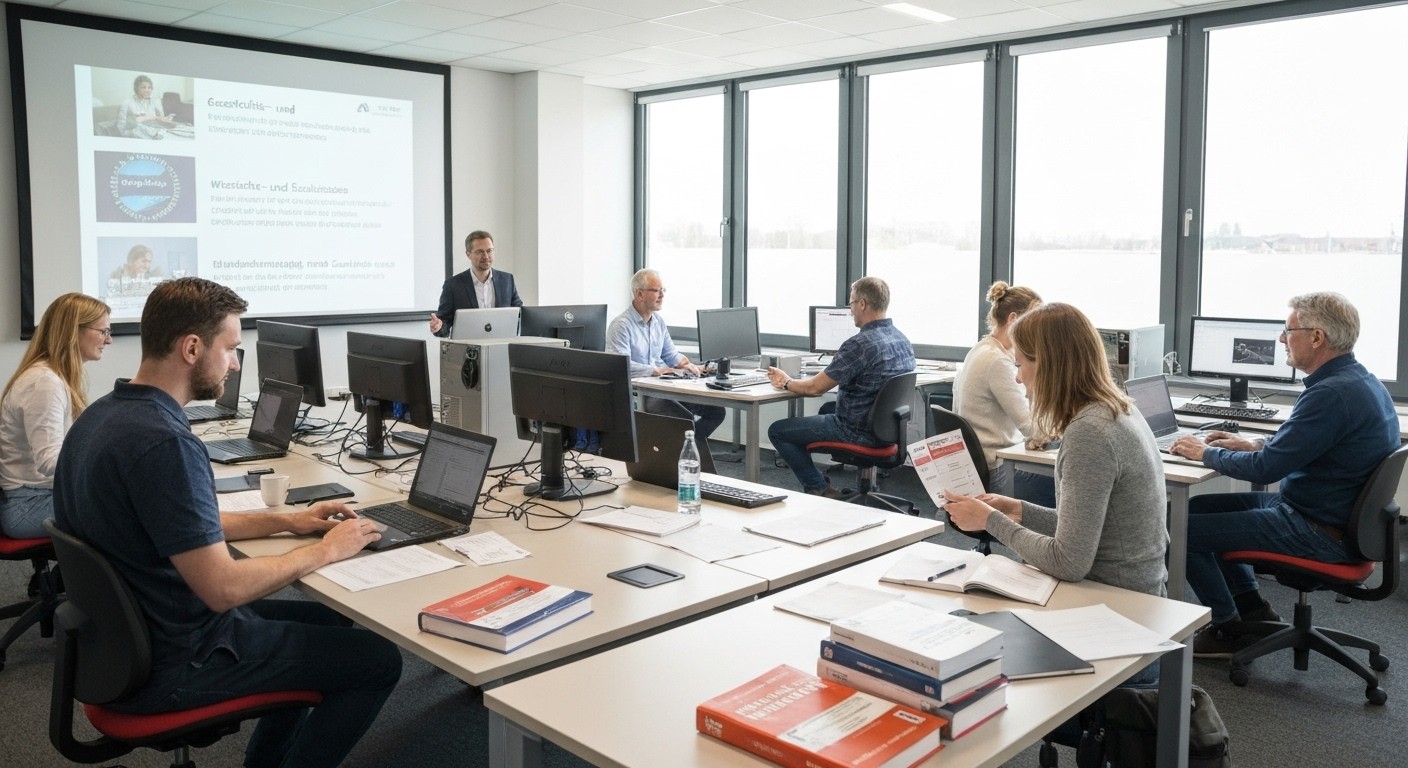 Sie lernen – gemeinsam mit anderen Schulungsteilnehmern – unter Einsatz moderner Unterrichtsmethoden. Mit diesem Mix sind Sie fachlich und persönlich optimal für die Praxis gerüstet. Dazu gehören, je nach Thema, der Live-Unterricht in einem Klassenraum unserer virtuellen Online-Akademie Viona® genauso wie Projektarbeit, die Erstellung und Präsentation eigener Arbeitsergebnisse, das Studium von Fachliteratur u. a. Während der gesamten Weiterbildung steht Ihnen ein moderner PC-Arbeitsplatz zur Verfügung. Sie werden von hochqualifizierten Fachleuten unterrichtet und betreut, die über umfassende theoretische Kenntnisse und fachpraktische Erfahrungen verfügen. Unsere Koordinatoren, die Sie auch beim Lernen begleiten, bieten Ihnen Unterstützung und Hilfestellung bei allen Fragen.