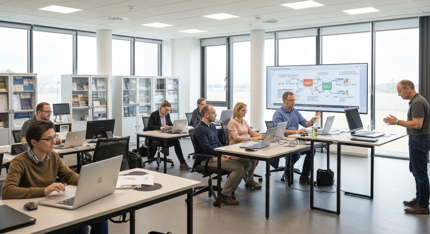 Sie lernen – gemeinsam mit anderen Schulungsteilnehmern – unter Einsatz moderner Unterrichtsmethoden. Mit diesem Mix sind Sie fachlich und persönlich optimal für die Praxis gerüstet. Dazu gehören, je nach Thema, der Live-Unterricht in einem Klassenraum unserer virtuellen Online-Akademie Viona® genauso wie Projektarbeit, die Erstellung und Präsentation eigener Arbeitsergebnisse, das Studium von Fachliteratur u. a. Während der gesamten Weiterbildung steht Ihnen ein moderner PC-Arbeitsplatz zur Verfügung. Sie werden von hochqualifizierten Fachleuten unterrichtet und betreut, die über umfassende theoretische Kenntnisse und fachpraktische Erfahrungen verfügen. Unsere Koordinatoren, die Sie auch beim Lernen begleiten, bieten Ihnen Unterstützung und Hilfestellung bei allen Fragen.
