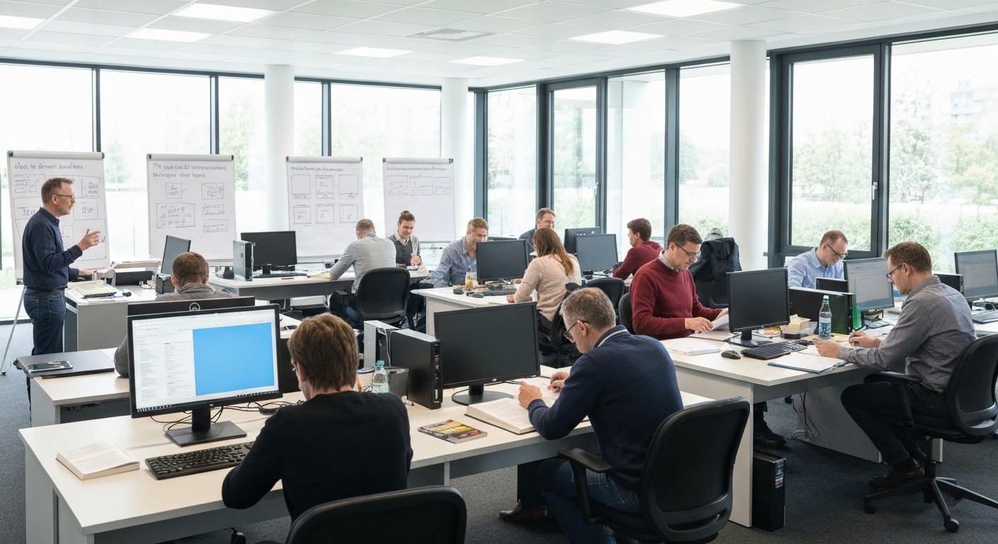 Sie lernen – gemeinsam mit anderen Schulungsteilnehmern – unter Einsatz moderner Unterrichtsmethoden. Mit diesem Mix sind Sie fachlich und persönlich optimal für die Praxis gerüstet. Dazu gehören, je nach Thema, der Live-Unterricht in einem Klassenraum unserer virtuellen Online-Akademie Viona® genauso wie Projektarbeit, die Erstellung und Präsentation eigener Arbeitsergebnisse, das Studium von Fachliteratur u. a. Während der gesamten Weiterbildung steht Ihnen ein moderner PC-Arbeitsplatz zur Verfügung. Sie werden von hochqualifizierten Fachleuten unterrichtet und betreut, die über umfassende theoretische Kenntnisse und fachpraktische Erfahrungen verfügen. Unsere Koordinatoren, die Sie auch beim Lernen begleiten, bieten Ihnen Unterstützung und Hilfestellung bei allen Fragen.