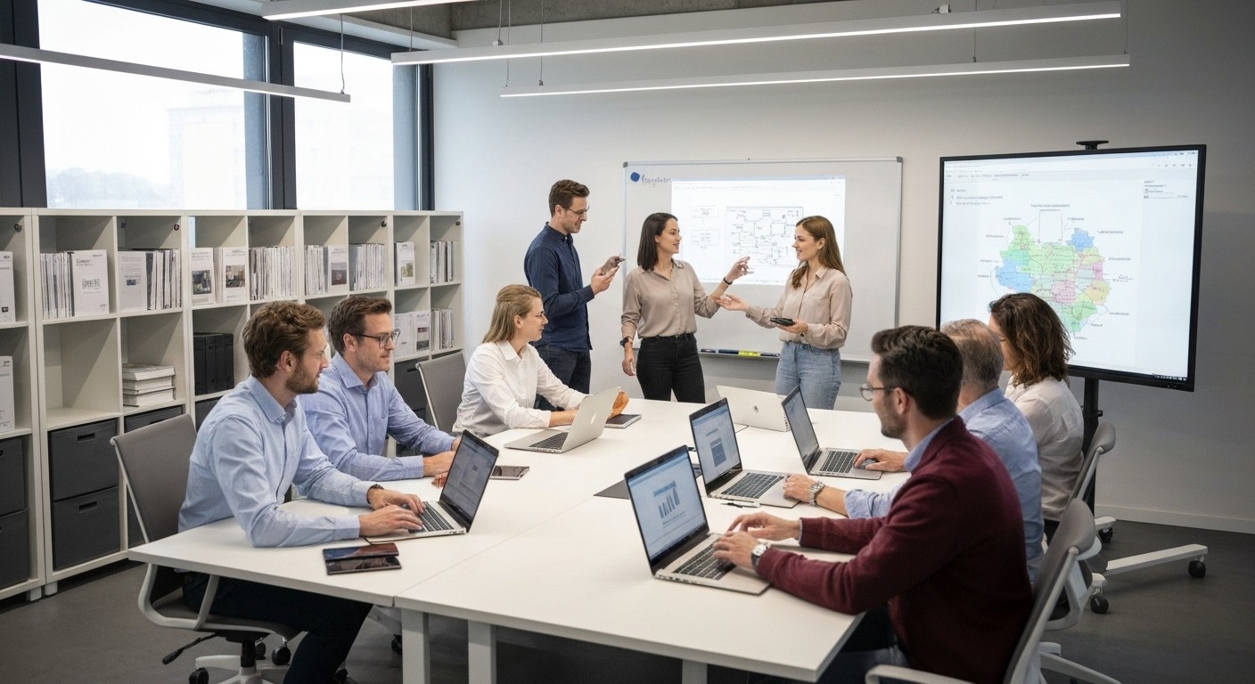Sie lernen – gemeinsam mit anderen Schulungsteilnehmern – unter Einsatz moderner Unterrichtsmethoden. Mit diesem Mix sind Sie fachlich und persönlich optimal für die Praxis gerüstet. Dazu gehören, je nach Thema, der Live-Unterricht in einem Klassenraum unserer virtuellen Online-Akademie Viona® genauso wie Projektarbeit, die Erstellung und Präsentation eigener Arbeitsergebnisse, das Studium von Fachliteratur u. a. Während der gesamten Weiterbildung steht Ihnen ein moderner PC-Arbeitsplatz zur Verfügung. Sie werden von hochqualifizierten Fachleuten unterrichtet und betreut, die über umfassende theoretische Kenntnisse und fachpraktische Erfahrungen verfügen. Unsere Koordinatoren, die Sie auch beim Lernen begleiten, bieten Ihnen Unterstützung und Hilfestellung bei allen Fragen.