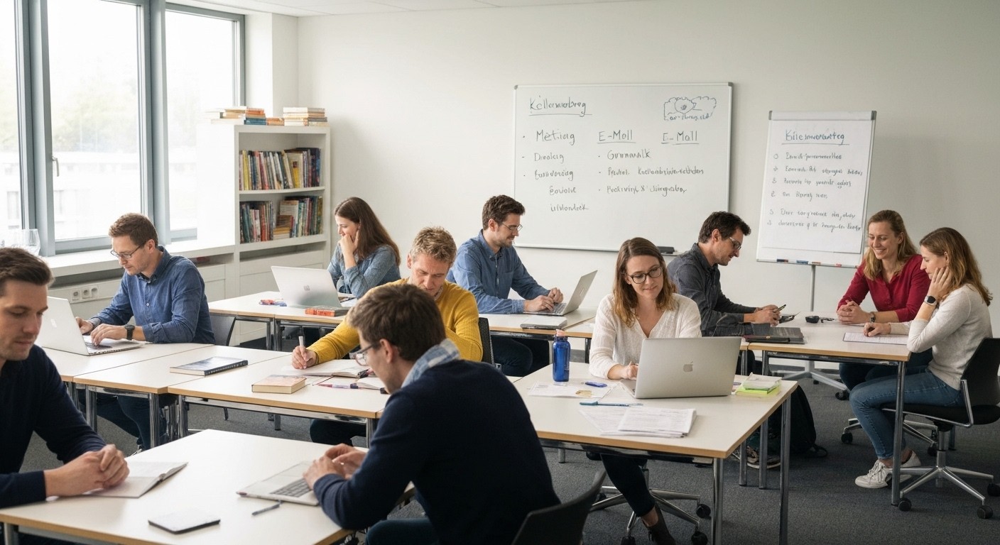 Der Kurs richtet sich an Menschen mit Migrationshintergrund mit einem niedrigen Anfängerniveau des deutschen Sprachniveaus A2, die in kaufmännischen Berufen tätig sind oder tätig werden wollen.