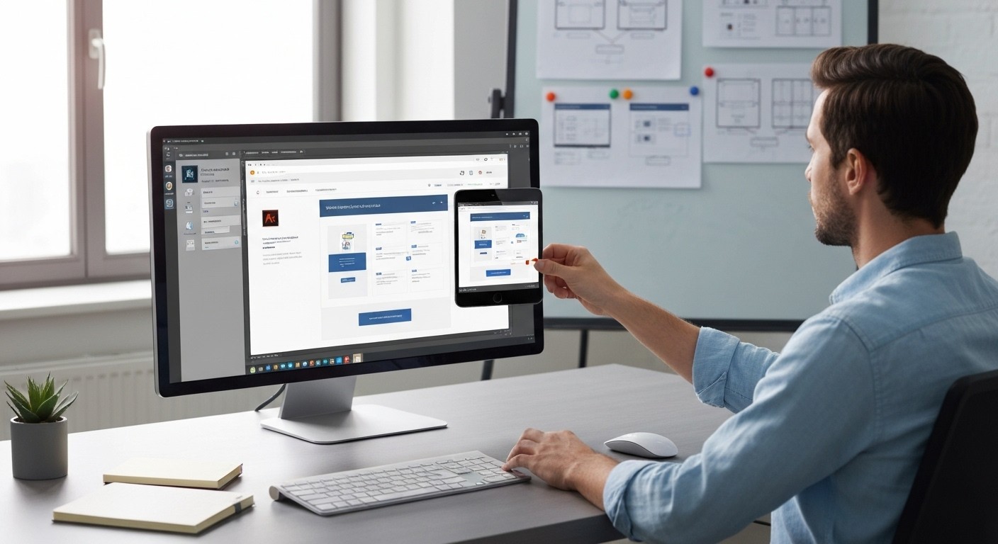 In diesem Kurs arbeiten Sie nach dem inzwischen internationalen Standard, Webseiten über einen Splitscreen (geteilte Bildschirmoberfläche) auf einem Monitor gleichzeitig für verschiedene Endgeräte zu produzieren. Während Sie beispielsweise für den Computermonitor designen, sehen Sie synchron auf den anderen Einstellungsfenstern, wie sich der Seitenverlauf auf dem Smartpad und dem Smartphone auswirkt. Als Ergebnis erhält man nach Fertigstellung also drei verschiedene Endprodukte. Darüber hinaus wird im Rahmen dieses Workflows die entsprechende App erstellt.