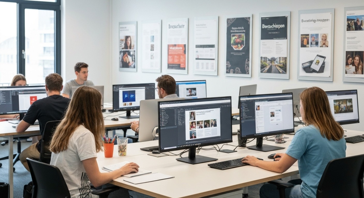 Erstellen Sie unter Anleitung eines Fachdozenten ein individuelles Print-, Web-Projekt oder eine Bewerbungsmappe. Durch die erworbenen Kenntnisse und anwendungsbereiten Fähigkeiten für die Werbe- und Designbranche besitzen Sie eine aussagekräftige Referenz für Ihre spätere Bewerbungen im grafischen Bereich.