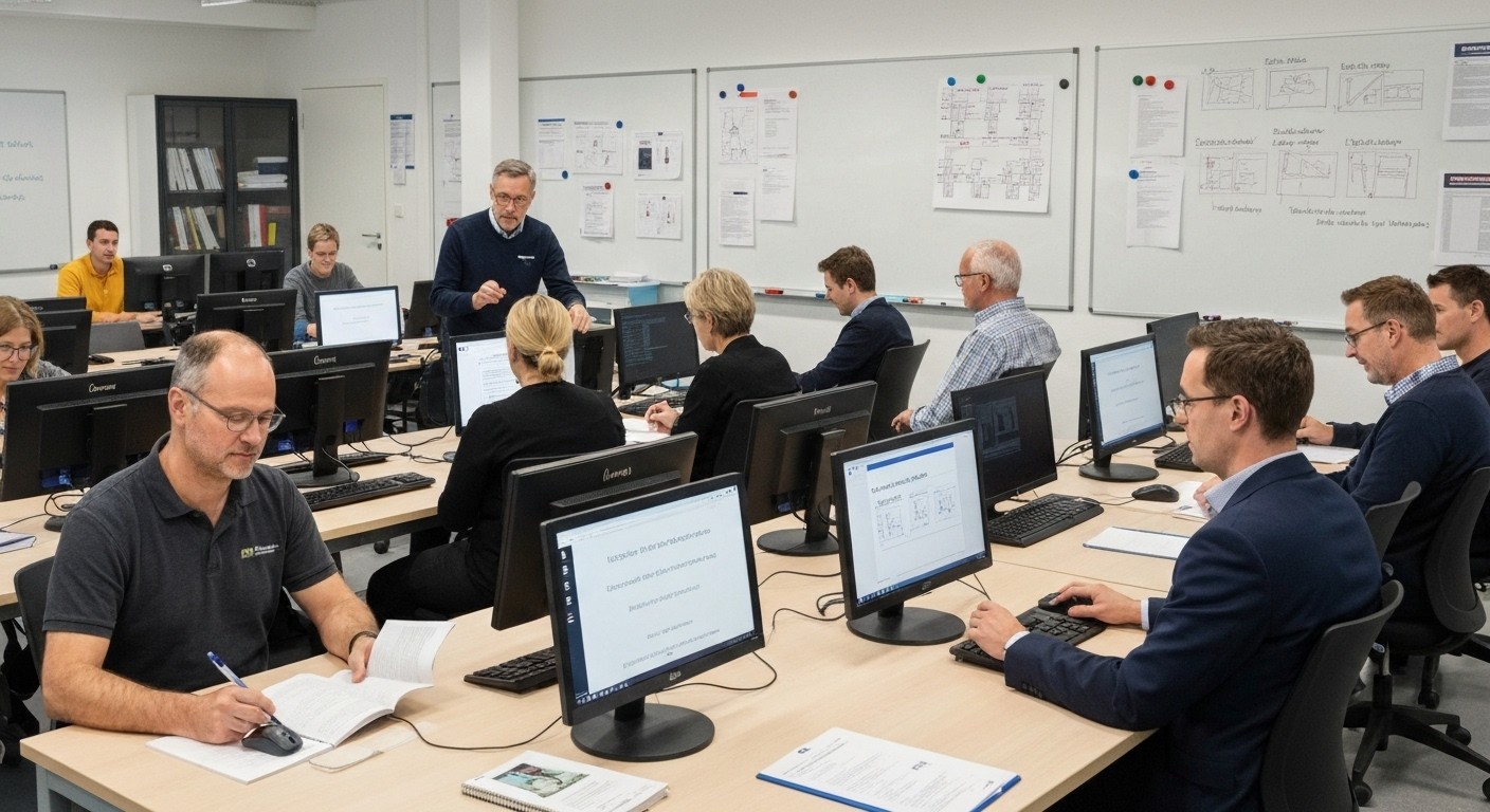 Sie lernen – gemeinsam mit anderen Schulungsteilnehmern – unter Einsatz moderner Unterrichtsmethoden. Mit diesem Mix sind Sie fachlich und persönlich optimal für die Praxis gerüstet. Dazu gehören, je nach Thema, der Live-Unterricht in einem Klassenraum unserer virtuellen Online-Akademie Viona® genauso wie Projektarbeit, die Erstellung und Präsentation eigener Arbeitsergebnisse, das Studium von Fachliteratur u. a. Während der gesamten Weiterbildung steht Ihnen ein moderner PC-Arbeitsplatz zur Verfügung. Sie werden von hochqualifizierten Fachleuten unterrichtet und betreut, die über umfassende theoretische Kenntnisse und fachpraktische Erfahrungen verfügen. Unsere Koordinatoren, die Sie auch beim Lernen begleiten, bieten Ihnen Unterstützung und Hilfestellung bei allen Fragen.
