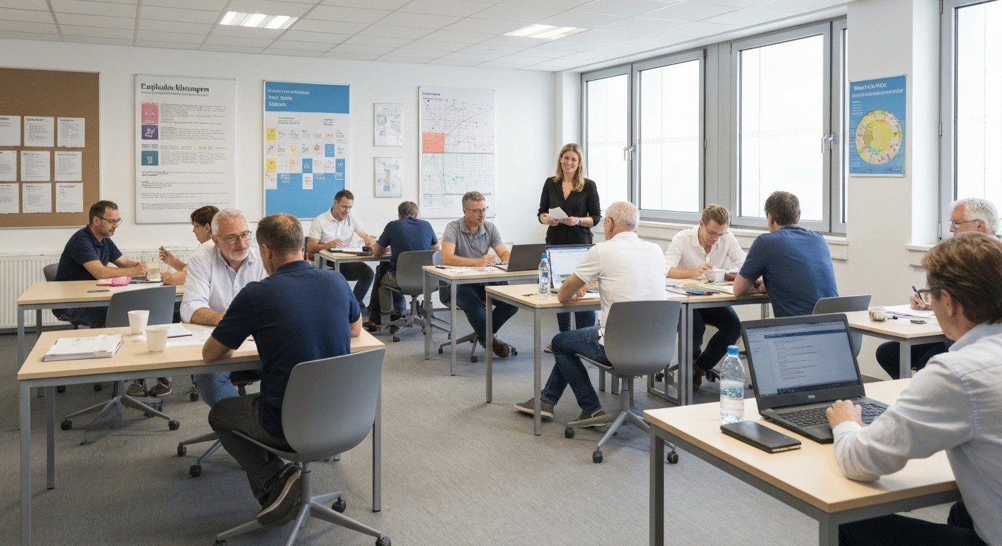 Sie lernen – gemeinsam mit anderen Schulungsteilnehmern – unter Einsatz moderner Unterrichtsmethoden. Mit diesem Mix sind Sie fachlich und persönlich optimal für die Praxis gerüstet. Dazu gehören, je nach Thema, der Live-Unterricht in einem Klassenraum unserer virtuellen Online-Akademie Viona® genauso wie Projektarbeit, die Erstellung und Präsentation eigener Arbeitsergebnisse, das Studium von Fachliteratur u. a. Während der gesamten Weiterbildung steht Ihnen ein moderner PC-Arbeitsplatz zur Verfügung. Sie werden von hochqualifizierten Fachleuten unterrichtet und betreut, die über umfassende theoretische Kenntnisse und fachpraktische Erfahrungen verfügen. Unsere Koordinatoren, die Sie auch beim Lernen begleiten, bieten Ihnen Unterstützung und Hilfestellung bei allen Fragen.