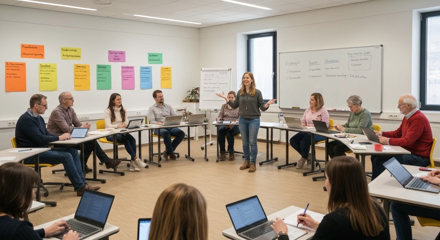 Dieser Kurs verbindet digitale Kompetenzen und Softskills mit pädagogischen sowie entwicklungspsychologischen Grundlagen für die Alltagsbegleitung und Lernassistenz für Kinder und Jugendliche. Sie lernen, digitale Tools sicher zu nutzen und trainieren empathische Kommunikation, Konfliktlösung und Teamarbeit. Sie beschäftigen sich mit den Entwicklungsphasen des Kindes, darauf abgestimmten Erziehungsstilen und dem Umgang mit herausforderndem Verhalten. Dabei werden auch die Zusammenarbeit mit Eltern, Schule, Trägern und Jugendamt sowie transparente Beobachtung und Dokumentation trainiert.
