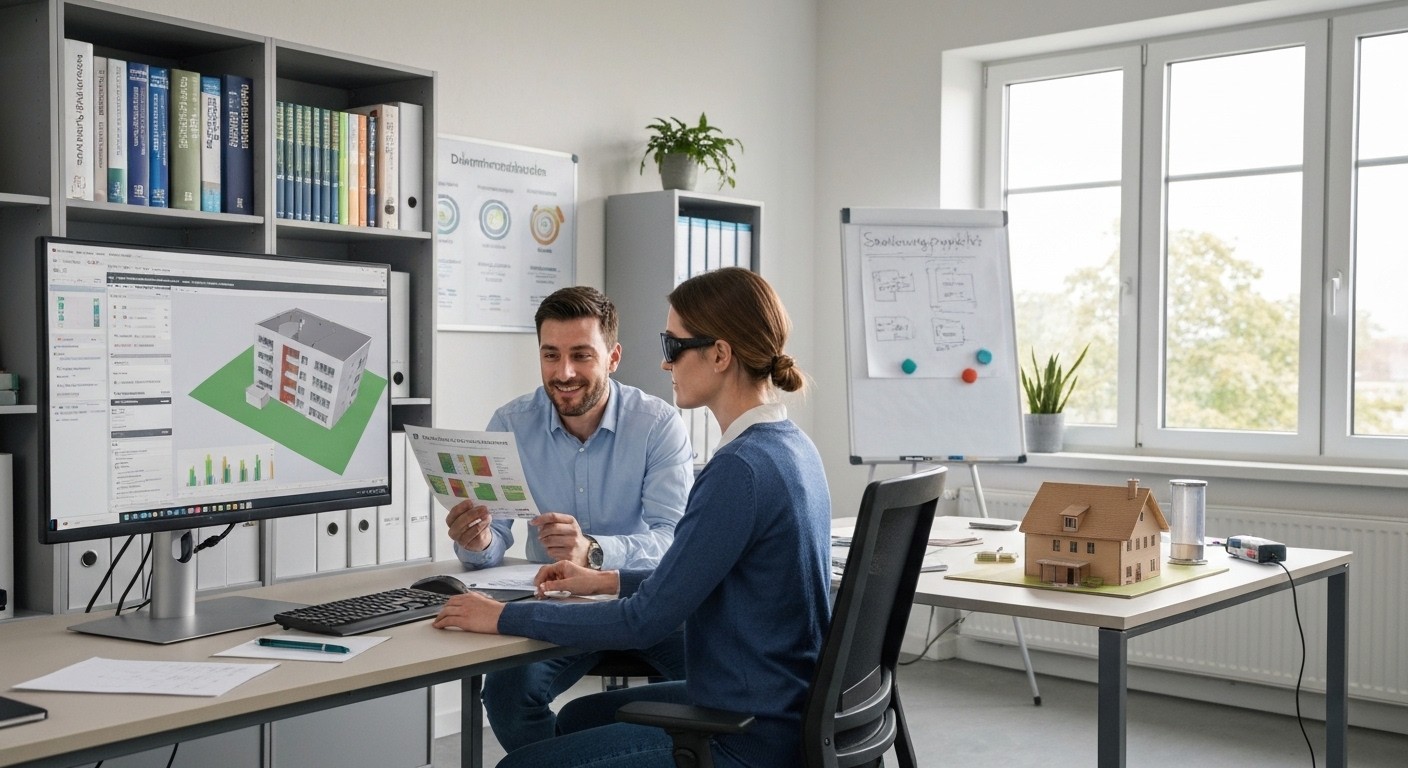 Sie erwerben mit dieser Weiterbildung die Qualifikationen eines vollwertigen Energieberaters, mit denen Sie den steigenden Anforderungen an energieeffizientes Bauen und Sanieren gerecht werden. Der Bedarf an fachgerechter, geförderter Energieberatung wächst – auch vor dem Hintergrund spezieller Gesetzgebungen und der Energieausweispflicht für Wohngebäude. Energieeffizienz-Experten sind für die umfassende energetische Analyse von Gebäuden zuständig. Sie beraten ganzheitlich in Bezug auf eine energieeffiziente Gebäudesanierung und stellen als Energieberater Energieausweise aus. Diese umfassende Energieberatung hat einen hohen Standard und wird vom Bundesamt für Wirtschaft und Ausfuhrkontrolle (BAFA) gefördert. Energieberater sind vor allem in Energieberatungsunternehmen, bei Ingenieur- und Architekturbüros oder auch in der öffentlichen Verwaltung beschäftigt.