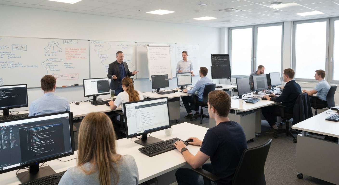 Diese Weiterbildung bereitet zunächst auf Module der modernen und aktuellen Programmiersprachen (Python, Java, C++, C#, PHP, JavaScript, ...) vor und behandelt die theoretischen Grundlagen der Softwareentwicklung, der Software-Analyse, des Software-Designs, der funktionalen und objektorientierten Programmierung und der Erstellung von Datenbanken sowie der Datenverarbeitung.