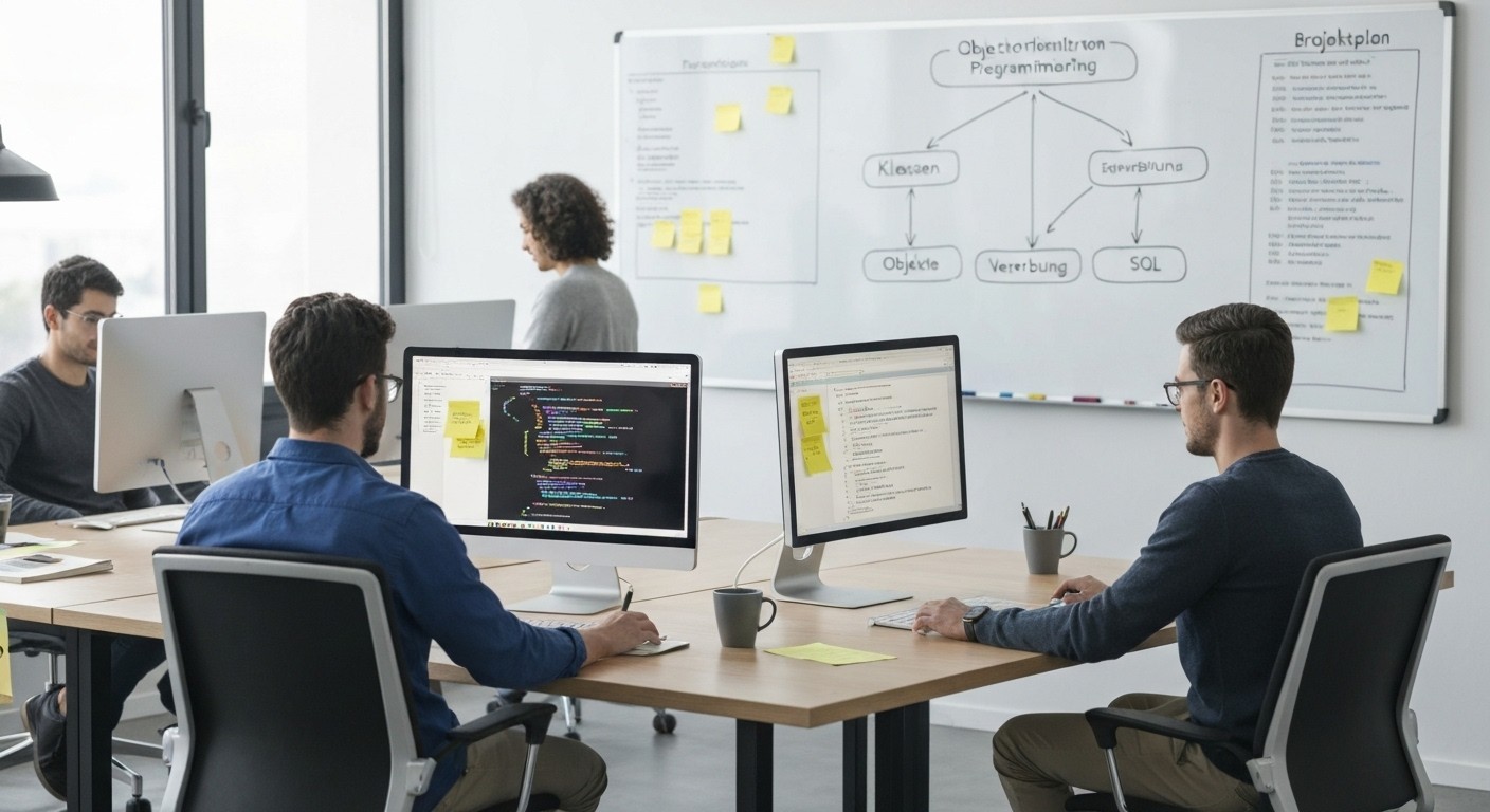 Diese Weiterbildung bereitet zunächst auf Module der modernen und aktuellen Programmiersprachen (Python, Java, C++, C#, PHP, JavaScript, ...) vor und behandelt die theoretischen Grundlagen der Softwareentwicklung, der Software-Analyse, des Software-Designs, der funktionalen und objektorientierten Programmierung und der Erstellung von Datenbanken sowie der Datenverarbeitung.