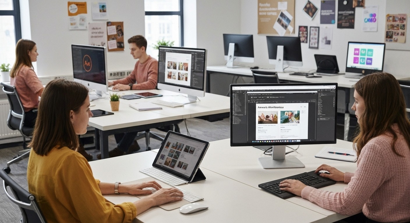 Die Weiterbildung vermittelt genau die Kompetenzen, die heute und in Zukunft in kreativen Berufen gefragt sind – von der Idee über das Gestaltungskonzept bis hin zur professionellen Umsetzung für Print, Web und digitale Medien.