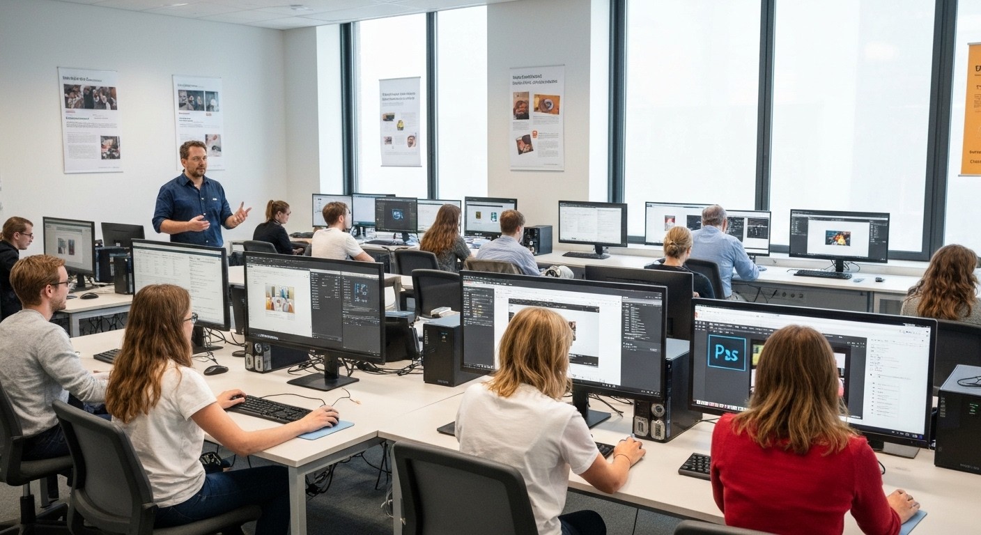 Diese Weiterbildung richtet sich an Berufstätige aus den Bereichen Grafikdesign, Mediengestaltung, Marketing und Werbung, die ihre Kenntnisse in der Adobe Creative Suite auffrischen und gezielt vertiefen möchten. Sie bietet einen praxisnahen Wiedereinstieg für alle, die bereits erste Erfahrungen im Umgang mit Adobe-Programmen mitbringen. Besonders geeignet ist der Kurs für Fachkräfte, die sich mit aktuellen KI-gestützten Designtechniken vertraut machen und diese sicher im Berufsalltag anwenden möchten. Ziel ist es, kreative Prozesse effizienter zu gestalten und moderne Werkzeuge gezielt für professionelle Gestaltungslösungen einzusetzen.
