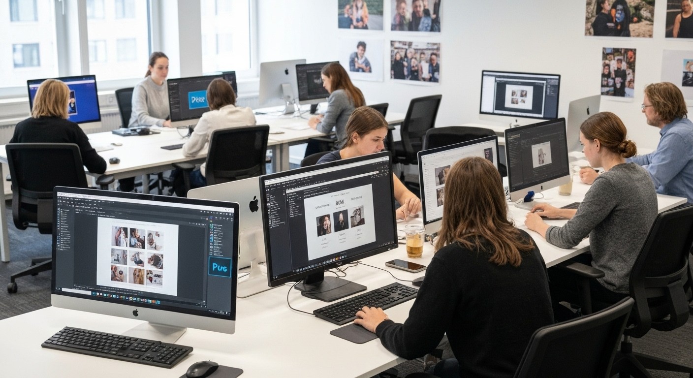 Neben der technischen Bildbearbeitung – etwa Freistellen, Maskieren, Retuschieren oder Arbeiten mit Ebenen – stärken Sie Ihr gestalterisches Verständnis in den Bereichen Typografie, Farbgestaltung, Layout und User Experience. Sie entwickeln ein Gespür für wirkungsvolle Designs und erfahren, wie Sie KI in kreative Arbeitsprozesse integrieren können.