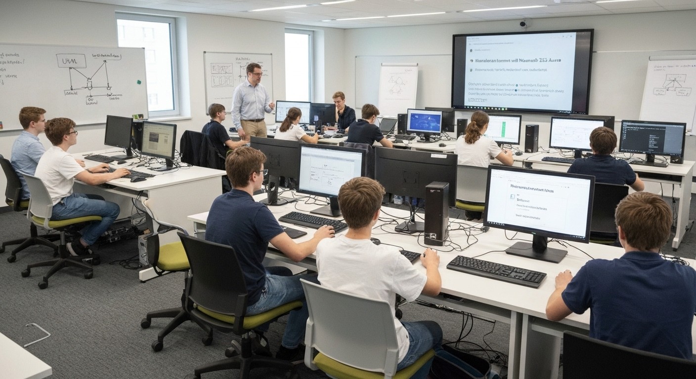 Vier der tragenden Fähigkeiten aller Fachinformatiker-Fachrichtungen sind umfangreiche Kenntnisse in Softwareentwicklung, Vorplanungsstufen mit UML, der Netzwerktechnik sowie Planung und Umsetzung von Datenbanken. Um einen versierten Einstieg in diese IT-Grundkompetenzen zu finden, werden zuvor noch Einstiegsgrundlagen für die technischen IT-Berufsbilder vermittelt.