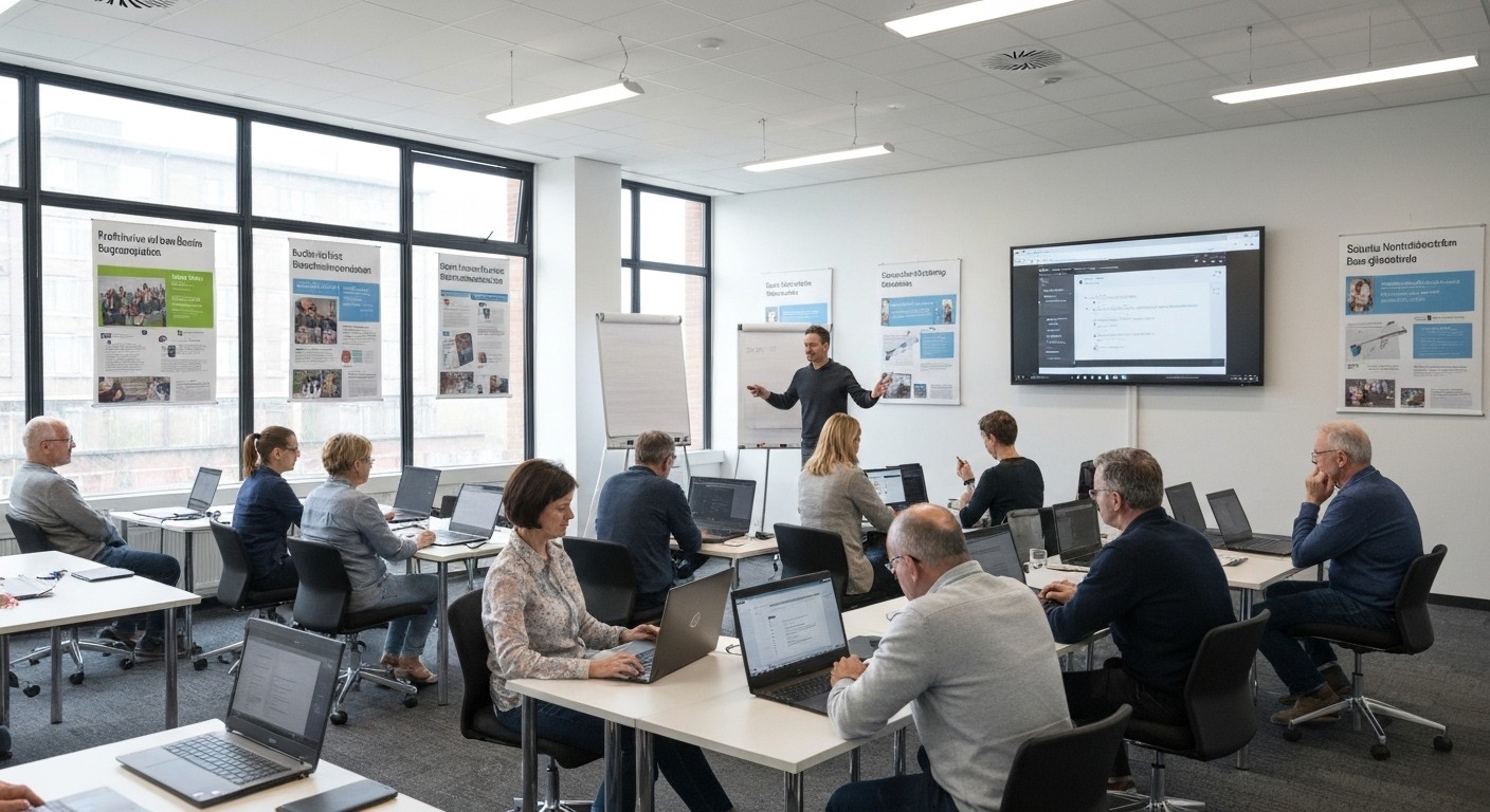 Englischkenntnisse sind in vielen Berufen gefordert. Ergänzen Sie Ihre Fähigkeiten und frischen Sie sie auf: So haben Sie eine gute Basis, um sich im anschließenden Fachunterricht der Umschulung selbstverständlich und sicher zu beteiligen. Dieser Kurs vermittelt Ihnen die notwendigen Englischkenntnisse, die Sie für eine Ihre Umschulung benötigen.